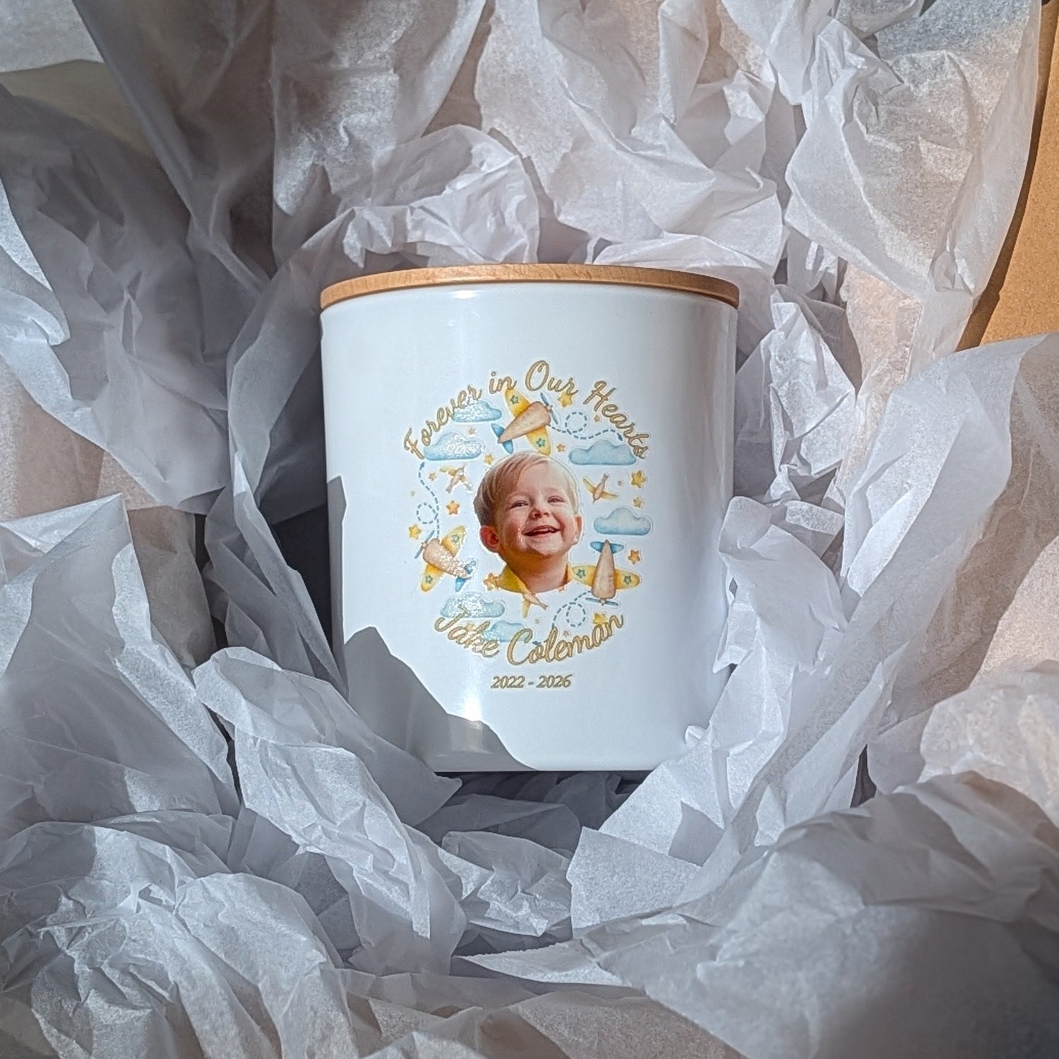 Personalised Watercolour Memorial Candle – Custom Photo & Message